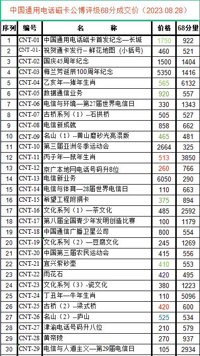 中国通用电话磁卡公博评级68分成交价(2023.08.29)
