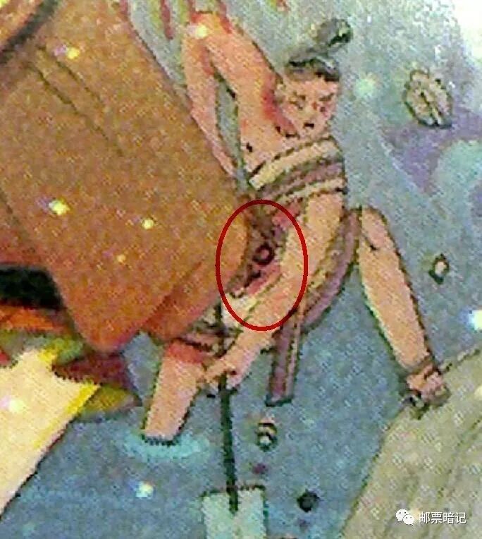 6-4同样是二处暗记,一处在邮票左下角“神”字上方的石头上,另一处在嫘祖腰束下,均为“嫘祖”汉语拼音首字母“LZ”。