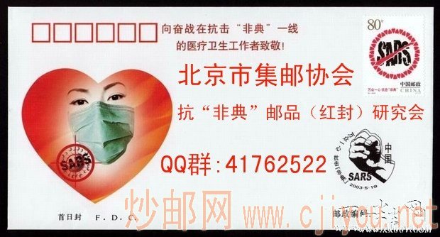 红非典首日封(应为赈灾或医务人员专用纪念封): | |