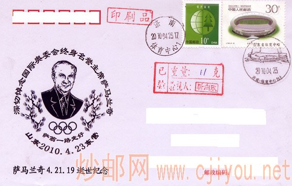 借外力做封图、照样实寄封纪念萨马兰奇逝世、出殡的当日