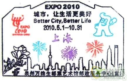 各地“中国2010年上海世博会开幕”邮戳8枚 刘振邦