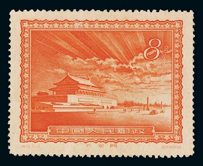 1956年特15首都名胜天安门图“放光芒”撤消发行邮票一枚,新中国著名珍邮之一,珍罕,全品