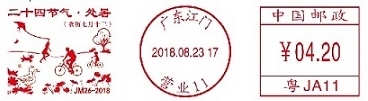 广东江门8月23日二十四节气·处暑邮资机戳