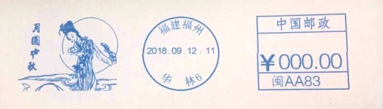 福建福州9月15日启用月圆中秋邮资机戳