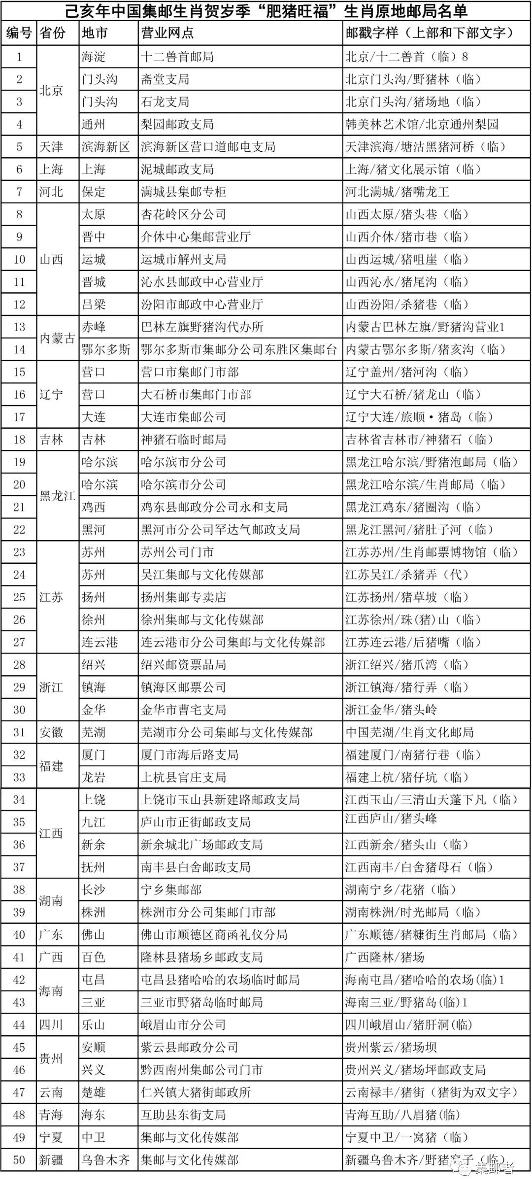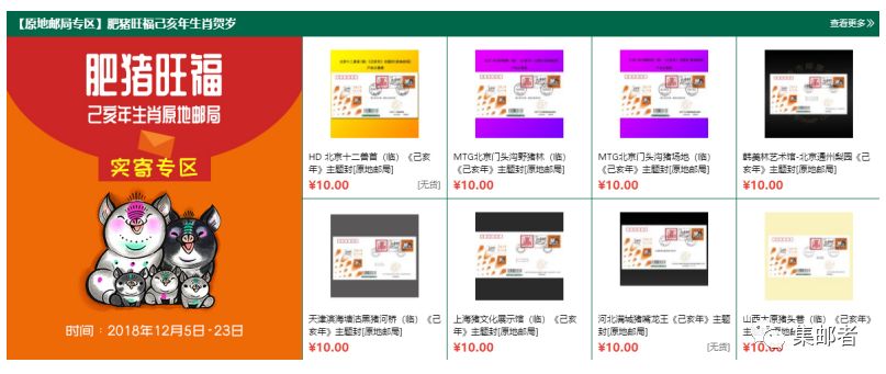 2018年12月5号,中国邮政公布了从全国挑选出50家与猪有关的原地邮局名单,网厅按照例年传统,也及时上架了这些原地邮局的生肖原地实寄封产品,从12月5日12:00起至12月23日17:00,连续19天,大家均可登陆中国集邮网厅原地邮局专区选购原地实寄封。