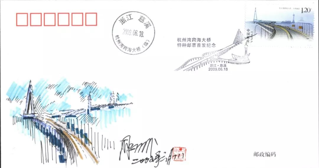 闫炳武绘制的杭州湾跨海大桥手绘封
