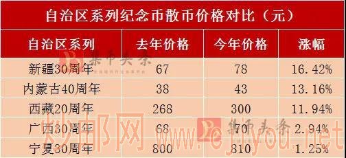 再来看看自治区系列,相比去年的行情,今年自治区板块的市场价格都出现了不同程度的上涨。