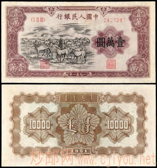 1951年第一版人民币壹万圆“牧马”/PMG 30