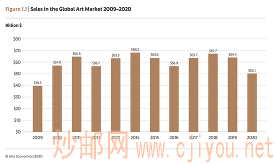 根据巴塞尔艺术展&瑞银集团《2020全球艺术市场报告》(以下简称《报告》)显示,2020年全球艺术品销售额约为3200亿元,公开拍卖的销售额约为1140亿元。艺术品产业的快速发展,已成为全球文化建设与文化大发展、大繁荣的必然趋势。
