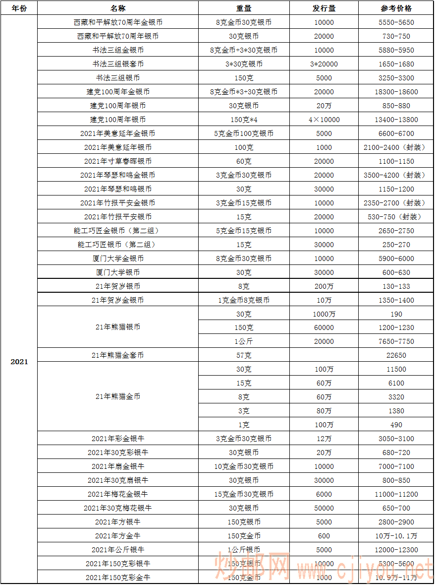 9.3金银币报价参考表-摸鱼集藏