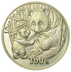 2001版熊猫1盎司金币(国宝D版)计划发行100000枚,实铸21000枚;