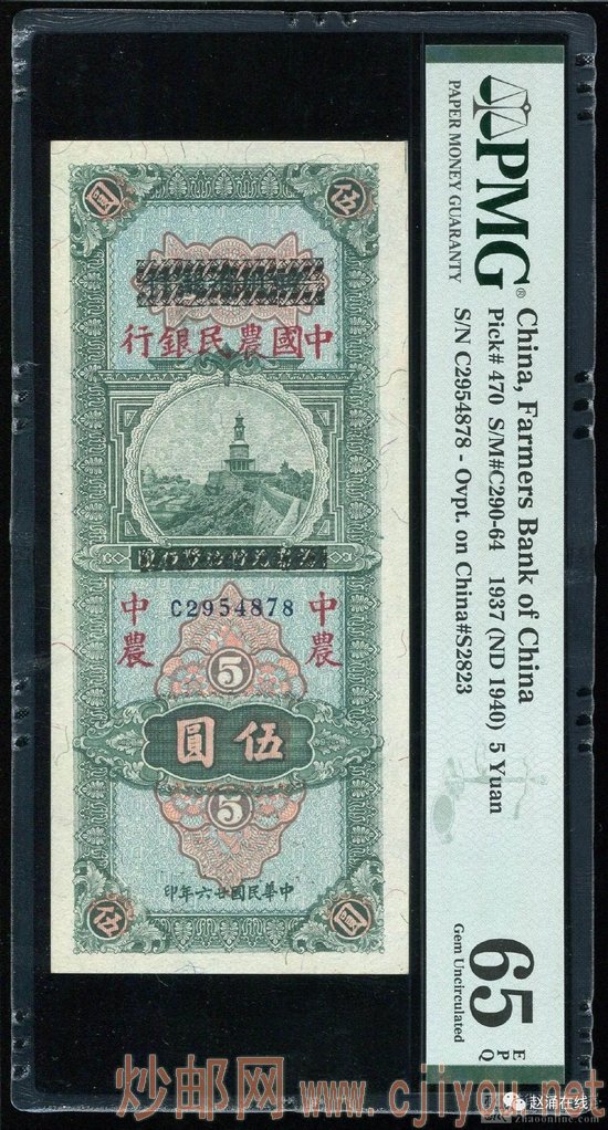 民国二十六年中国农民银行伍圆一枚(C2954878、PMG 65EPQ)