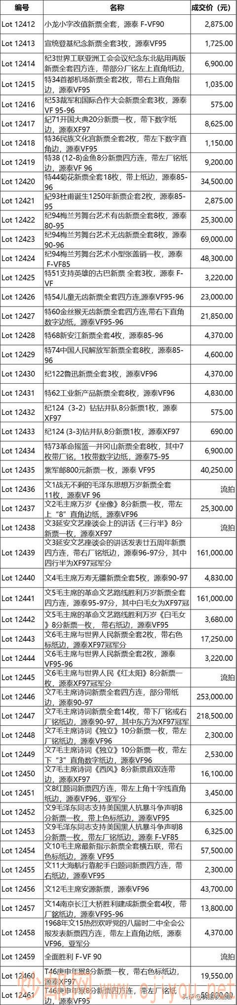 可以看到除了少量的邮票(3套),其余皆以高价成交,可见投资者对于评级邮票的热情与信心依旧高涨。