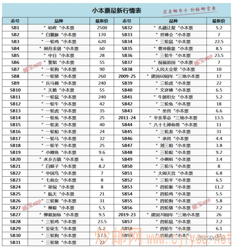 查询更多邮票、钱币、纪念钞、金银纪念币以及磁卡的价格,请登录“邮宝”APP。