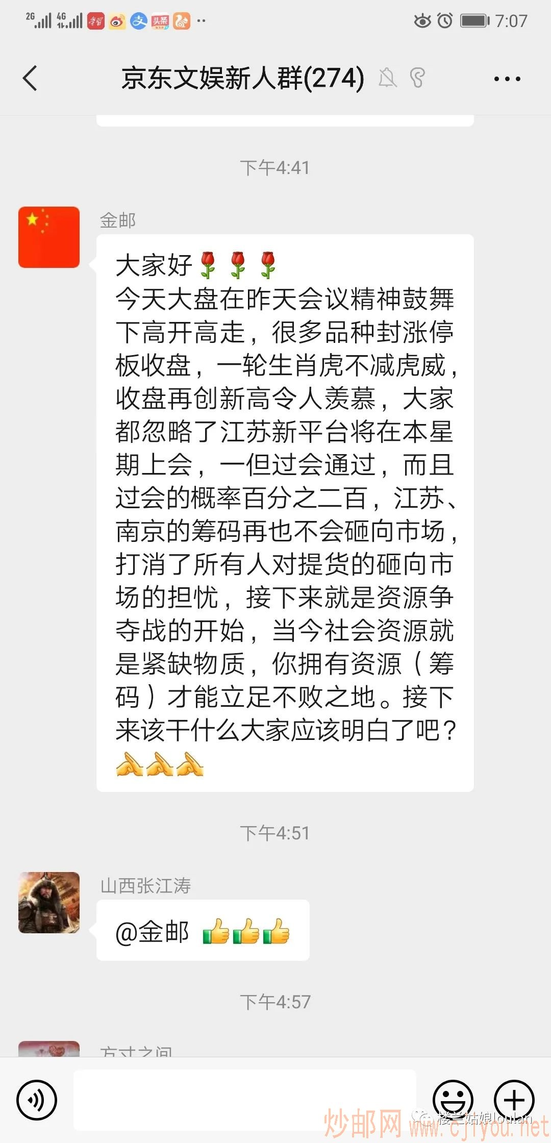 今天,京东文娱在昨夜行业精英腾讯会议的精神指引下,大盘一改上周五的低迷,成交546万,低价多支品种涨停板没有卖单。一轮生肖虎再破新高,收18.72,涨幅8.83%,成交额62万元,依然是流量明星。