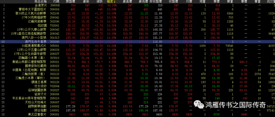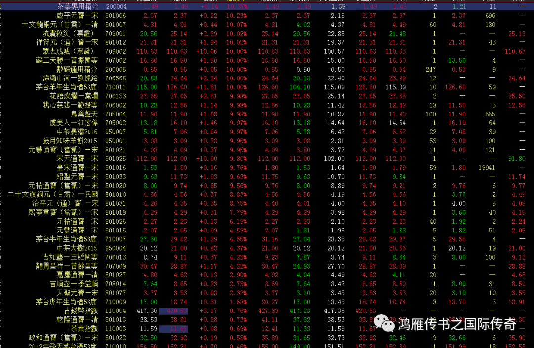数码来看依然是不温不火,指数依然震荡收绿,但红盘品种较多,朱系的茅台没有很好的表现,难于带动数码行情,古钱币和部分收藏品权重较小,难于引领市场,继续等待新的信号!