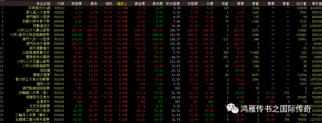 孙系品种继续全线红盘,但品种依然是缩普的强势,成交量较小,只能潜伏等待时机;曹总的两个银币继续震荡为主;仁和系的大气换手拉升涨停,后续继续上涨;神品29届再次大封单缩量拉升7连板,走势依然强势;第七届、澳门牛、拙政园、部队等也跟随涨停,还有不少品种近期成交量和换手率可观,可以逐步关注,等待后期的拉
