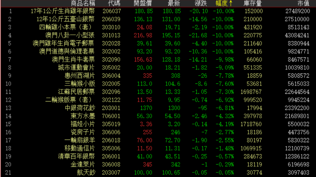 (国际文交所【白盘】跌幅榜--2023年2月9日)