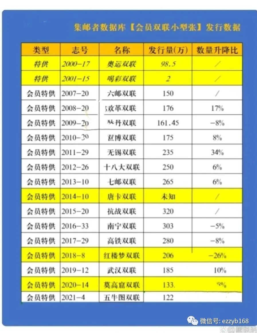 所以,剔除这两个双联强后,我们从图中不难看出,这些年双联张的发行呈现出一个^字形,也就是发行量从2007年到2015年是一个上升形态,从2016到2022年是一个下降的趋势,而且122万枚的“五牛图”在双联板块十五个品种中发行量也是最少的,可以说,“五牛图”双联张,浑身处处都是“宝”,后市潜力不可低估