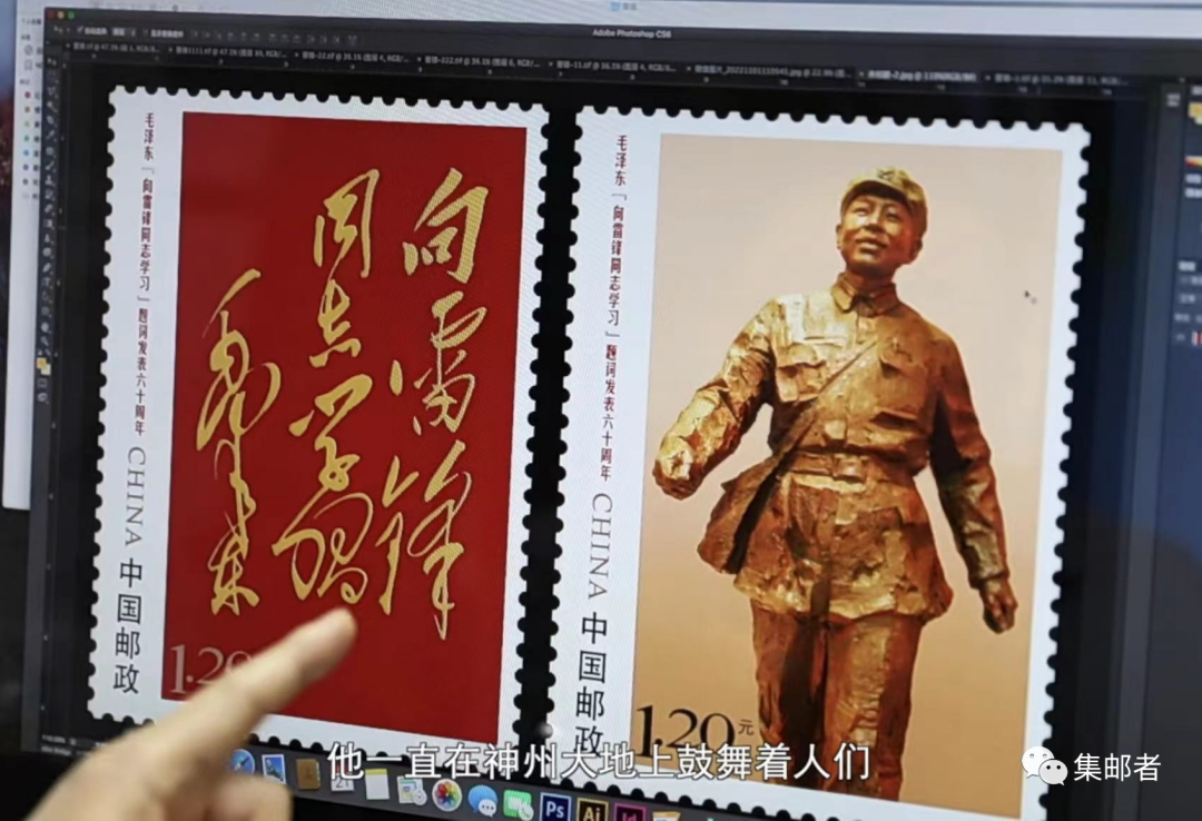 中国邮政放出了2023-3《"向雷锋同志学习"60周年》邮票的宣传视频,而视频里也放出了《雷锋》2-1毛主席题词的未用稿设计图: