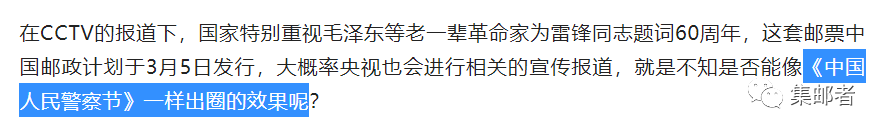 而这套《雷锋》邮票感觉似曾相识回到《警察节》当时的情况,一边倒的声音都预测破发打折,但最终《警察节》成为黑马票,而且已发行2年多时间,目前警察节大宗市场价格仍在面值的1.5倍左右。最主要的原因真是出圈了...