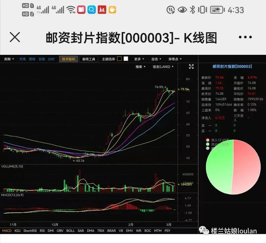 上周五和今天,有不明资金狂扫3元以下的封片,虽然封片板块整体涨幅不大,但是换手率很高,封片系列在历次邮市大行情中都是最暴利的板块之一,京东文娱的品种多轮托管,严格入库,许多老品种线下几乎枯竭。兔年新春平台姚总对于市场的表态:今年不会再进行任何品种托管,也就是资金场内瓜分这些资源。目前随着线下政策的松缓、现货的活跃,市场的苏醒,越来越多的资金看好文娱产品,暴风雨,来得更猛烈些吧!