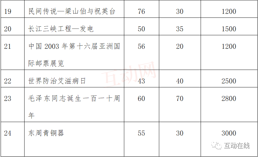 (三)03小版张邮票系列发行量
