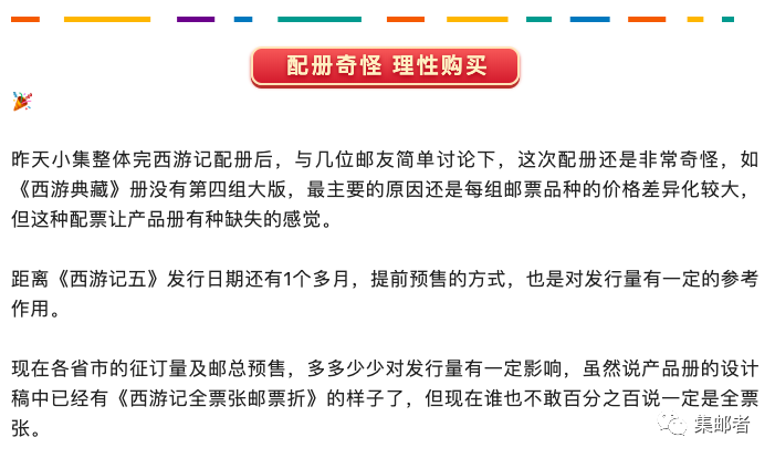 今天看到群里有些邮友开始退单,其实这也是为什么小编当初写文章《收官之作《西游记》特供邮票!多个产品册都有!盲盒式对赌...》就是说明有很多的不确定性。