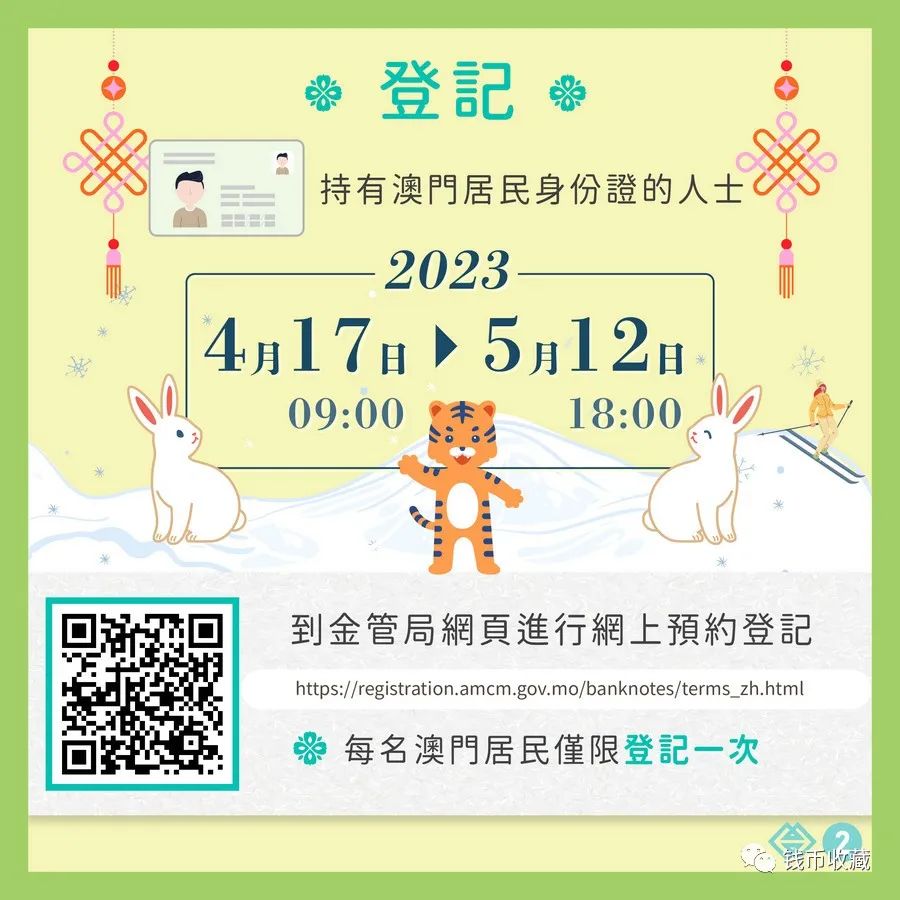 【澳門日報消息】兩家發鈔銀行所發行的壬寅虎年及癸卯兔年生肖鈔,連同早前已發行的第24屆冬季奧林匹克運動會鈔票,將合併讓澳門居民登記兌換。網上登記期由下周一(4月17日)起。