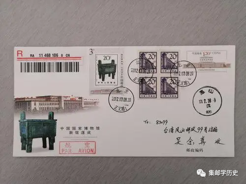 2012年《中国国家博物馆新馆落成》邮资封加贴符资航空实寄台湾首日封
