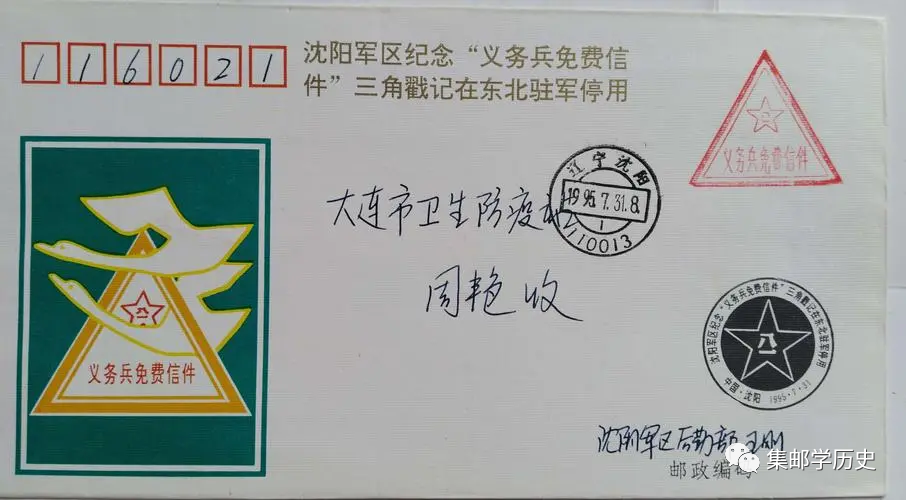 1995,7,31义务兵三角戳在东北驻军停止使用尾日实寄封