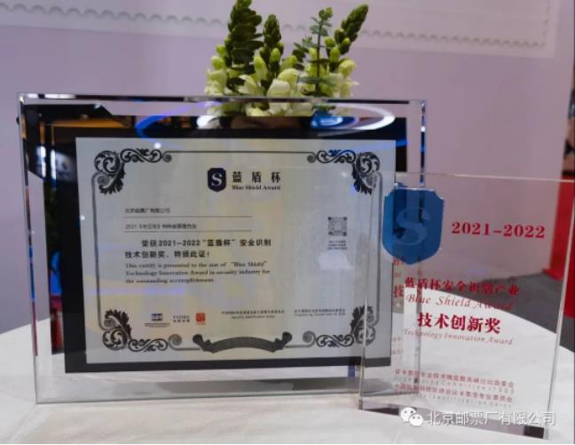 “蓝盾杯”奖项由中国国际科技促进会证卡票签专业委员会和证卡票签安全技术论坛组委会联合组织,由相关领域专家组成的评审委员会最终评出。代表高端防伪印制行业最高水平。