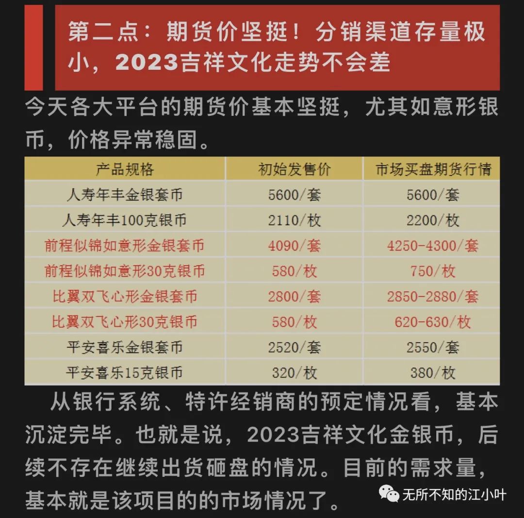 回到2023年吉祥文化系列金银币的分析。先看一张在抽签中途某号发布的期货价格截图: