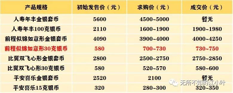 江小叶没有参与任何一枚的抽签,原因有三:一是没有钱,心有余而力不足购买溢价多、投资风险大的贵金属纪念币。二是个人收藏时裸币不太好保存,后期风险很大(参考文章:银币白斑白雾分析)。三是根据以往吉祥文化系列的经验,能有涨幅的一般克数更大一些、发行溢价更大一些,可能有一两枚黑马,但并不能以自己认为的美丑来判断。 基于此,江小叶并未预约抽签此次纪念币。