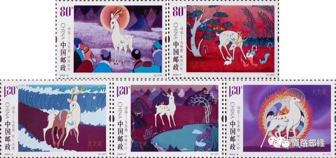 中国邮政定于2023年6月1日发行《动画——九色鹿》特种邮票一套5枚。详情如下。