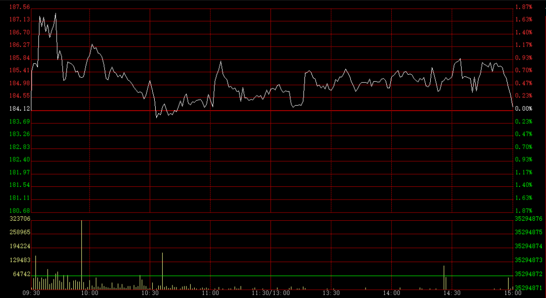 今日行情综述:国文今天上午开盘冲高,随后红盘震荡。白盘综合指数收盘上涨0.07%,收在184.24。成交0.81亿。最高点187.54点。最低点183.43点。