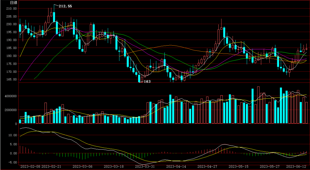 今天继续震荡向上。连续三天收长上影线。突破箱体才能扭转趋势,188点是关键点位。晚盘精选跌破60日线后震荡。