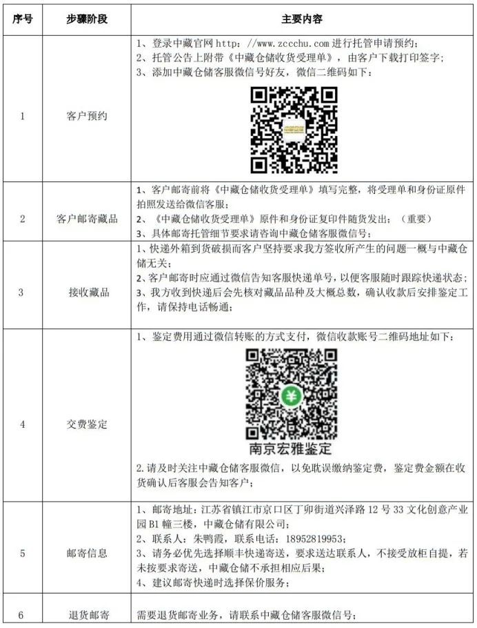 经中藏仓储有限公司(以下简称本公司)研究决定,启动下列藏品的托管流程,本公司将对会员申请托管入库的藏品进行统一鉴定,具体事项公告如下: