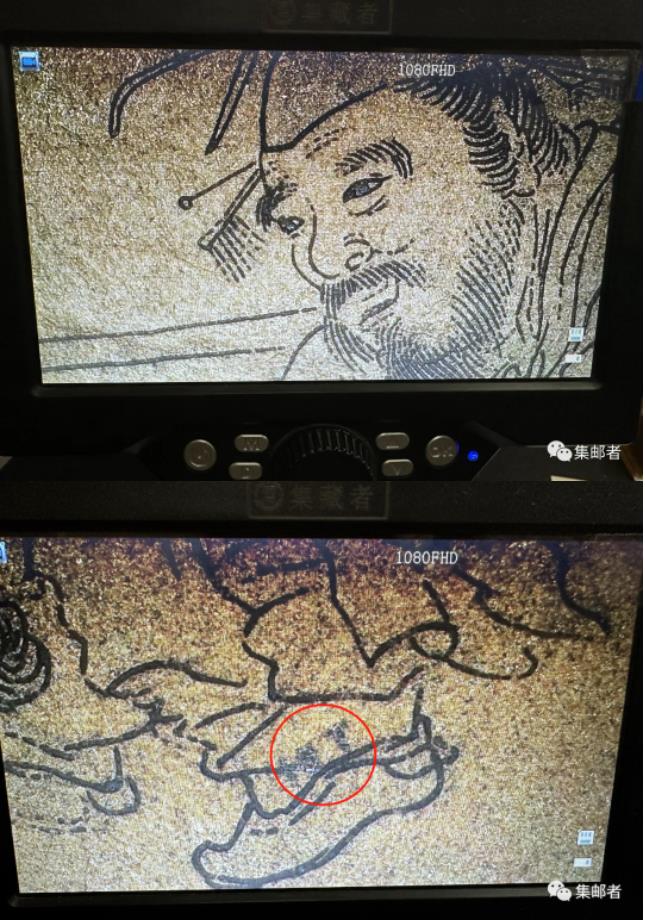 刘洪毅老师估计那边无齿邮票没到货,他文章中《邮评人 | 2023-9《货郎图》雕刻及荧光表现→》有齿邮票是没有发现暗记的。