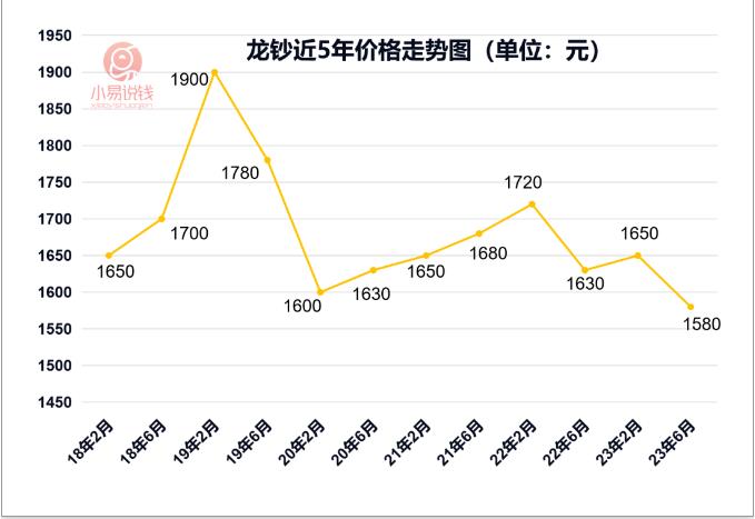 我整理了近五年的成交价格走势图,可以看到现在龙钞已到了近五六年来的最低点。