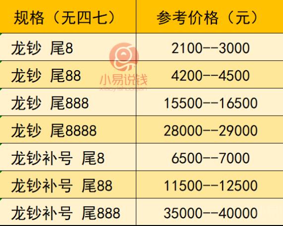 ▲龙钞好号码市场参考价,每日数值变动较大,仅供参考