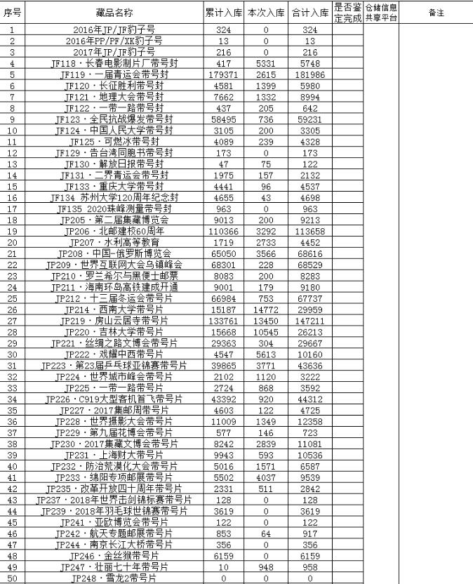 根据2023(托)第004号《PF277·连云港带号封》藏品托管公告,本公司组织相关机构对申请人所递交该托管公告之藏品在指定地点进行专业鉴定。此次因托管藏品数量较多,鉴定周期较长,考虑托管人能够及时得知鉴定结果,本公司将每周更新最新鉴定结果,直至藏品全部鉴定完成。单个藏品全部完成鉴定后,本公司会将该藏品入库数据移交至南京金网艺购电子商务有限公司。