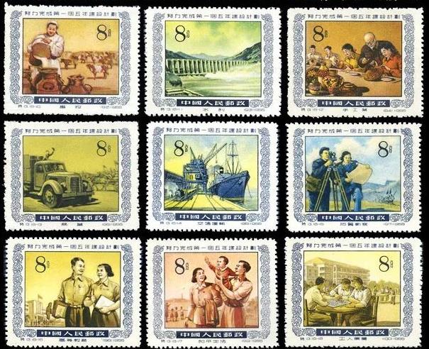 周末欣赏邮票,下面这套票让我翻看了很久,那就是特13——努力完成第一个五年建设计划。