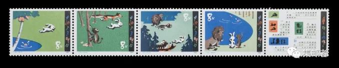 邮票的“副票”,是指在邮票某一侧,与邮票相连印刷的相关图案或文字。与邮票一样四周打有齿孔,刷有背胶,但没有国铭和票铭,也没有面值的部分。比如中国邮政发行的这套T.51《童话——“咕咚”》特种邮票一套四枚,四枚邮票描绘了“咕咚”的故事情节,而副票则是故事的文字讲述。
