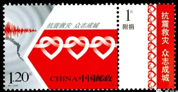 还有一种有面值的副票,比如2008年的“抗震救灾 众志成城”,副票上写有“1元”的面值。这个“1元”并非代表邮资凭证的面值,而是一种附捐金额。在你购买这套邮票时,是要同时支付主票的面值1.2元和副票上的附捐金额1元。但贴用时,只能当作1.2元的邮资使用,额外支付的1元是用来支援灾区的附捐金额。