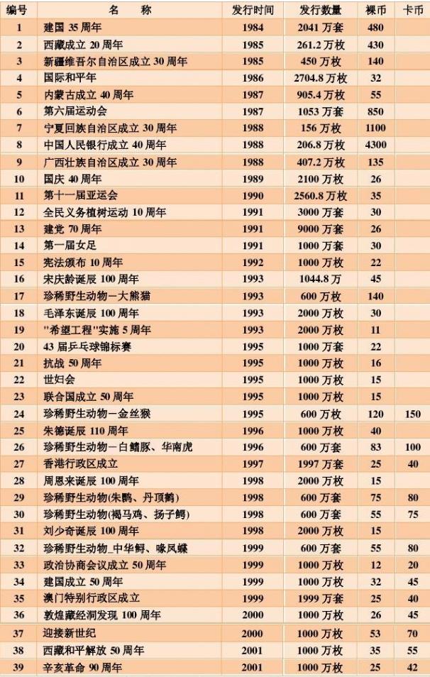 港澳回归、周恩来、刘少奇三种纪念币的发行量甚至达到了2000万枚,每年纪念币发行套数固定在2-7套……