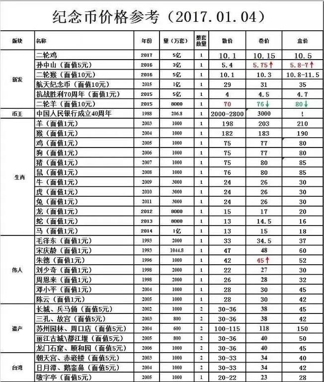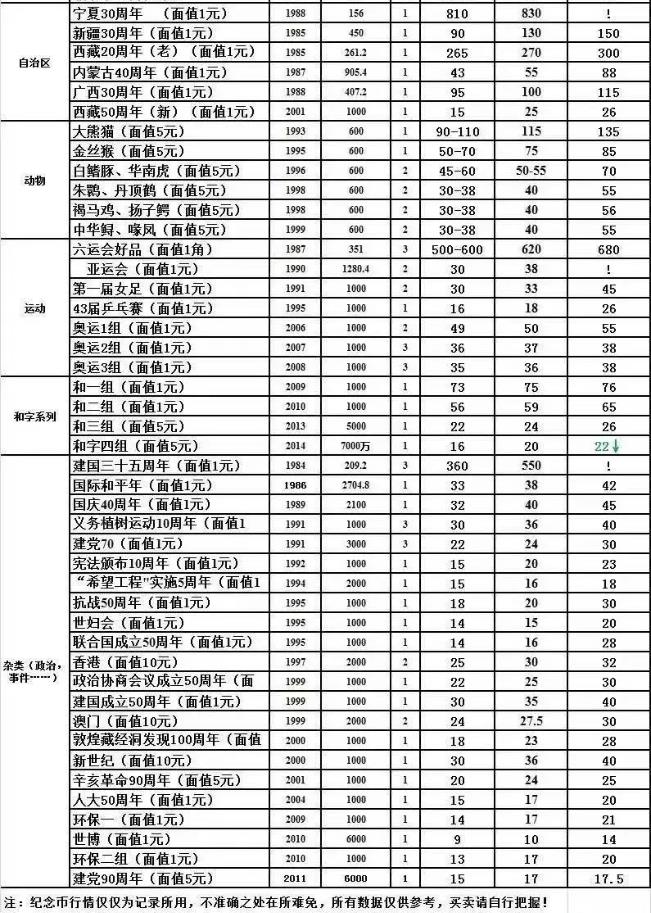 仅仅隔了一年,这些纪念币的价格就翻倍上涨,部分品种甚至能抵得上普通工人几个月的工资!下面都拿老精稀来举例说明,例如: