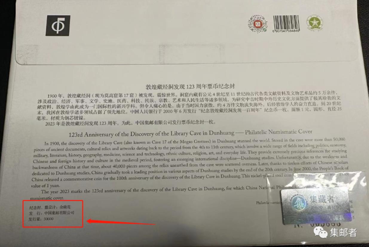 《敦煌藏经洞》邮币封发行量共3万套!每枚均带独立编号!