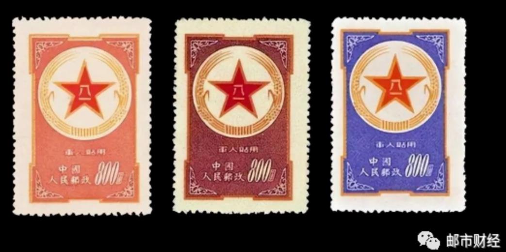 本文的主角就是发行于1953年的“军人贴用”邮票,该套邮票全套三枚,图案面值均相同,只是印刷颜色上有所区别,被分别称为“黄军邮”、“紫军邮”和“蓝军邮”。