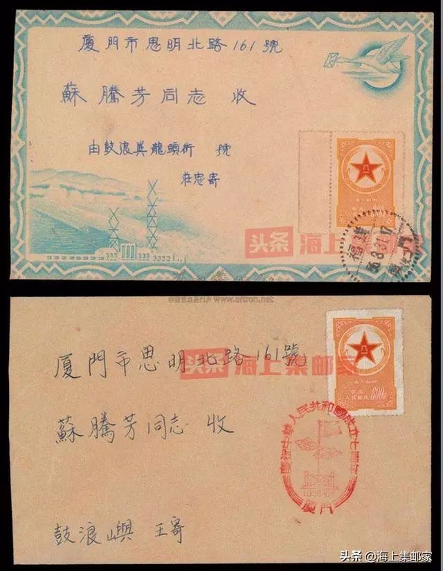 虽然10版“黄军邮”错失了,但庆幸的是父亲的回忆却提供了这段军邮史上的宝贵资料。专门研究军邮史的集邮家李曙光曾撰文指出:黄军邮、紫军邮、蓝军邮在当时部队并不分军种使用。而父亲认为这种说法并非绝对的,“黄军邮”用于陆军,“紫军邮”用于空军,“蓝军邮”用于海军。当时,东北军区属于陆军,因而总后勤部没有下发“紫军邮”和“蓝军邮”。至于当时为何有人既有“黄军邮”又有“紫军邮”?父亲对此解释:当时,写信人不多,一是各兵种军人之间有多余的邮票可以互相交换;二是部队调动比较频繁,今天就职陆军,明天可能送到空军或海军学习或工作。至于“军邮”为何停发?父亲说,可能考虑邮票会泄密。因为,从邮票数量可以推断出部队的人数和兵种,当时正值抗美援朝战争,这无疑是一大隐患。 说起这段往事,父亲总有点愧疚,没能保留好“黄军邮”。我多次安慰他:“你是10版黄军邮的见证人,就是对后人最大的精神财富。”